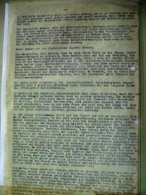 „Máme prísľub zástupcu vlády, že zväčšia pracovné tábory až pre 5 tisíc. Ani tu nemôžem našich priateľov na druhej strane hraníc ušetriť od výčitiek, lebo keď sú teraz odosielaní väzni, budú medzi nimi práve takí priatelia, ktorí prichádzajú do úvahy pre tábory. Keby sme už mali Vaše kladné stanovisko a mohli ho predložiť vláde, mohli by sme veľkú časť ohrozených chaweroth ochrániť pred tým najhorším. Musíme prevziať veľkú zodpovednosť, konať čo najrýchlejšie, lebo vláda chce rozšíriť tábory a naše svedomie ťaží to, že práve táto najdôležitejšia časť našej práce nenachádza potrebné porozumenie. Prosím Vás preto veľmi dôrazne, aby sa táto záležitosť definitívne vyjasnila a aby sme dostali Vaše kladné a celkom konkrétne návrhy.“